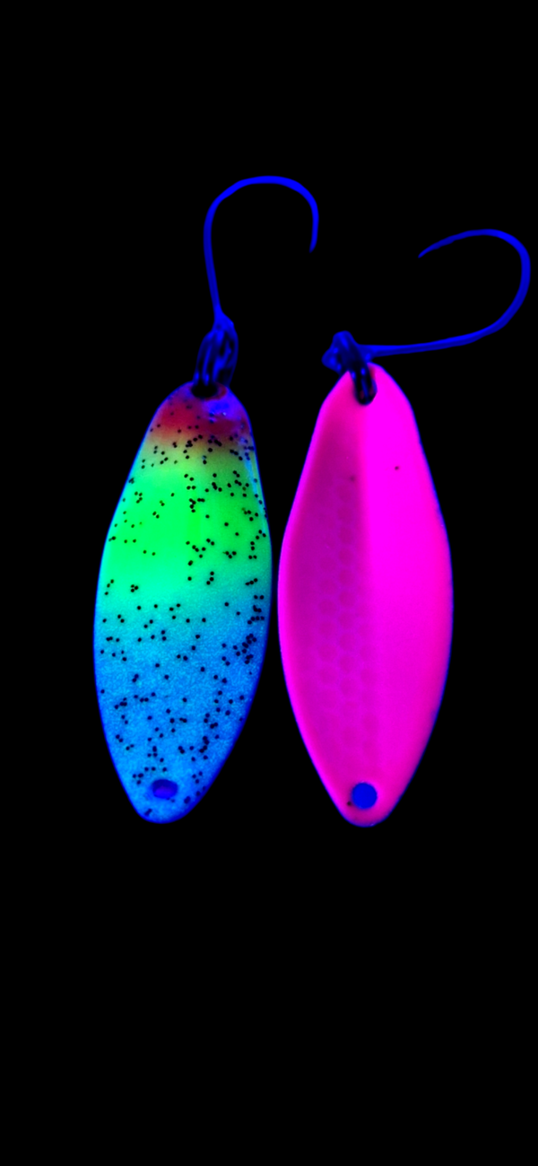 Der Spoon im GH Style ist ein Spoon, der durch seine Form überzeugt. Lang und breit zugleich, mit einer mittigen „Kante“ diese fließend in einer Y-Form endet. Die eine Hälfte des Spoons hat dabei mehrere optische Einschnitte, die bei der Führung für einen einmaligen Effekt sorgen. In Kombination mit seinem einmaligen Lauf, lässt dieser Spoon selbst die trägsten Forellen nicht kalt! Gewicht des Spoons 2,5 Gramm, Verpackungsinhalt 1 Stück.